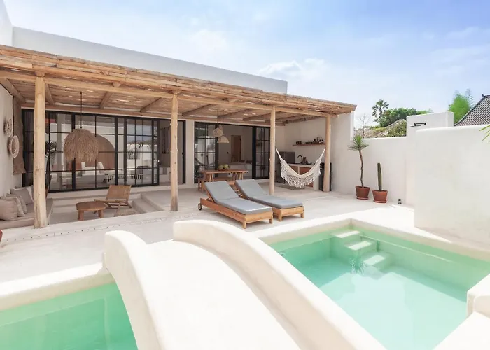 Con una piscina, Yucca Villas está situada en el distrito Pererenan y ofrece a sus huéspedes la posibilidad de relajarse en piscina de inmersión. Con una terraza, esta villa está situada a 15 minutos en coche del Templo de Tanah Lot.